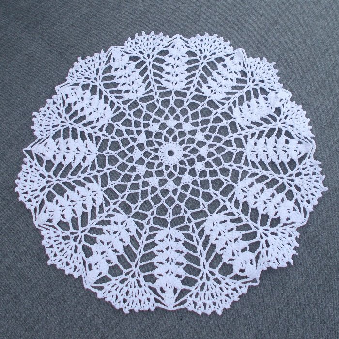 Biała, delikatna i nieduża serwetka wykonana na szydełku z bawełnianej nici. Idealna do koszyczka Wielkanocnego.