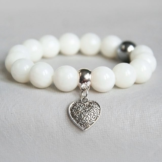śliczna i niezwykle efektowna bransoletka na solidnej, podwójnej lince elastycznej, wykonana z pięknej muszli w kolorze białym, wpadającym w ecru (kule 12mm) oraz srebrnego hematytu i metalowych elementów w kolorze srebra... ... zobacz też podobne muszLOVE bransoletki ;-) PASUJE NA NADGARSTEK 16-17cm.... BIŻUTERIA ZAWSZE PODRÓŻUJE W OZDOBNYM OPAKOWANIU :-) ... zobacz przykładowe zestawy ... .