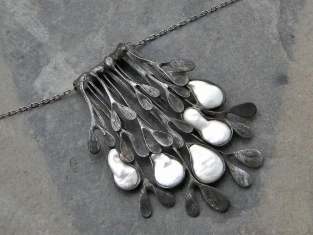 Naszyjnik z białych,duzych pereł (max 2,3cm) w ocynowanej miedzi.