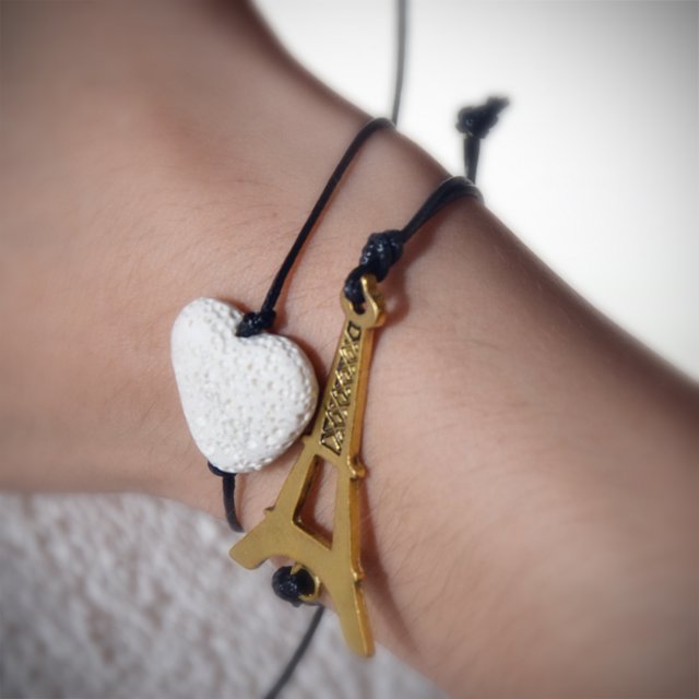 Delikatna bransoletka wykonana z czarnego sznureczka i kamyczka w kształcie serduszka w kolorze białym. Z możliwością regulacji szerokości.