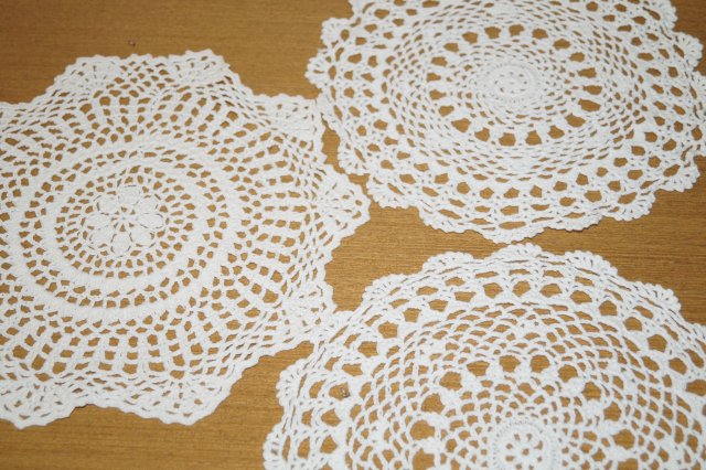 Trzy piękne ręcznie robione serwetki w kolorze białym