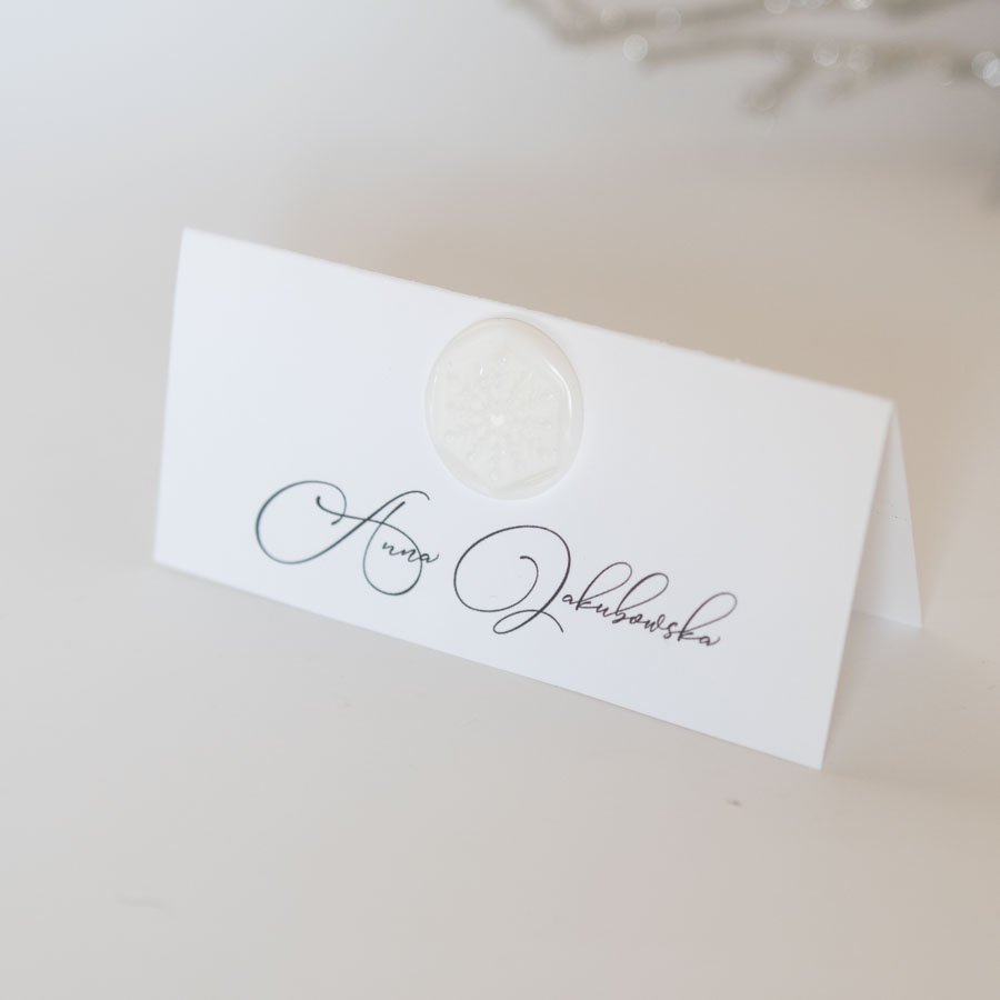 Zestaw 10 sztuk zimowych winietek na stoły weselne.