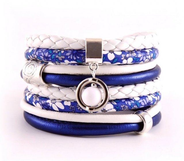 Urocza, wygodna bransoletka w kolorach białym i granatowym.