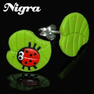 Kolczyki wykonane z masy termoutwardzalnej, umieszczone na antyalergicznych sztyftach (wkrętach). Wielkość listków to ok. 12 mm.