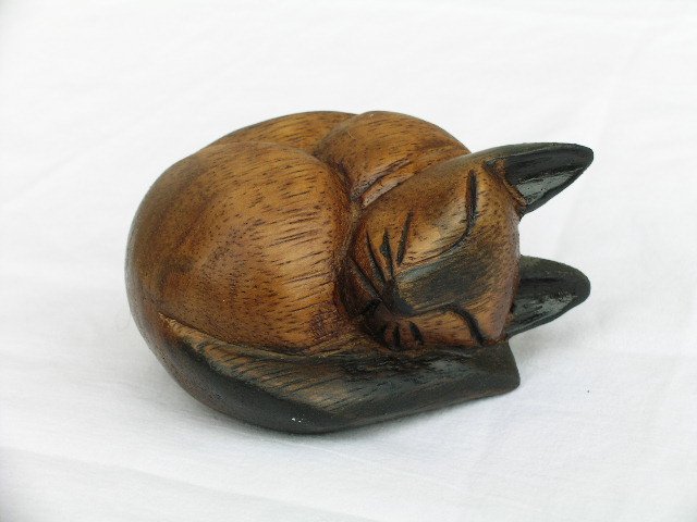 Bez-granic-do-zakochania duża figurka śpiącego Kota. Szlachetnie drewniana, ręcznie rzeźbiona i ręcznie malowana. Drewno egzotyczne. Niewiarygodna autentyczność kociej pozy we śnie ... drzemka to? :)