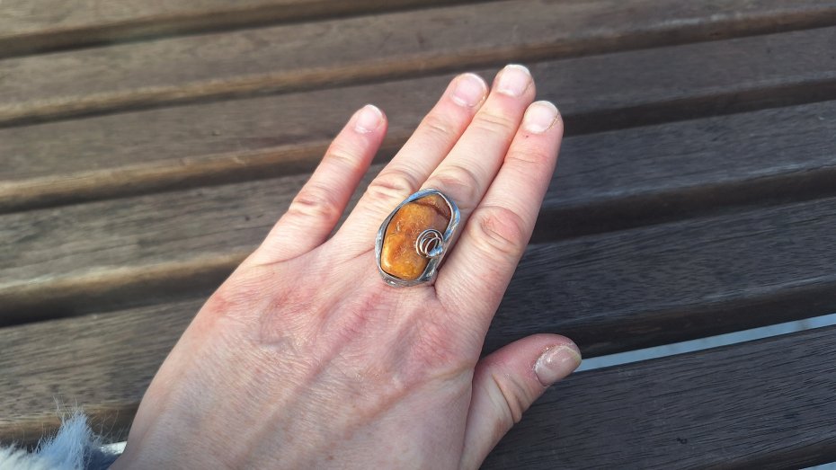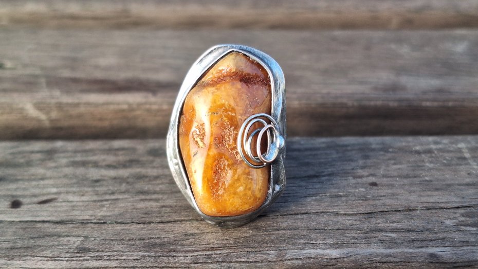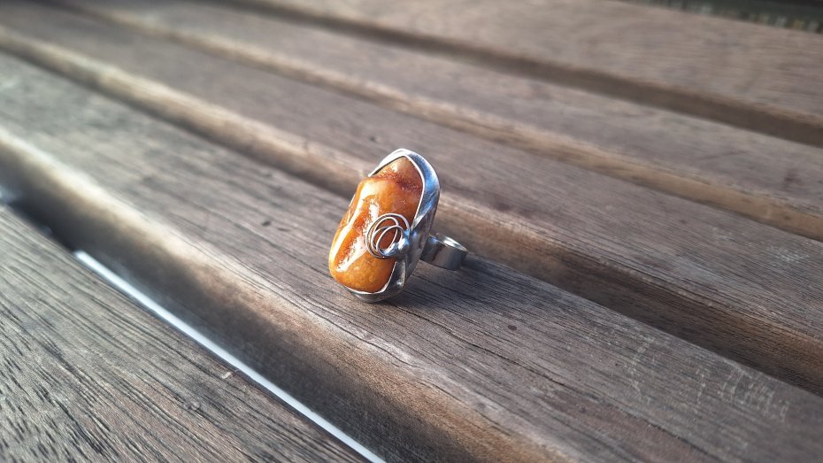 Tagi: #bursztyn, #regulowana obrączka, #regulowany pierścionek, #surowy pierścionek