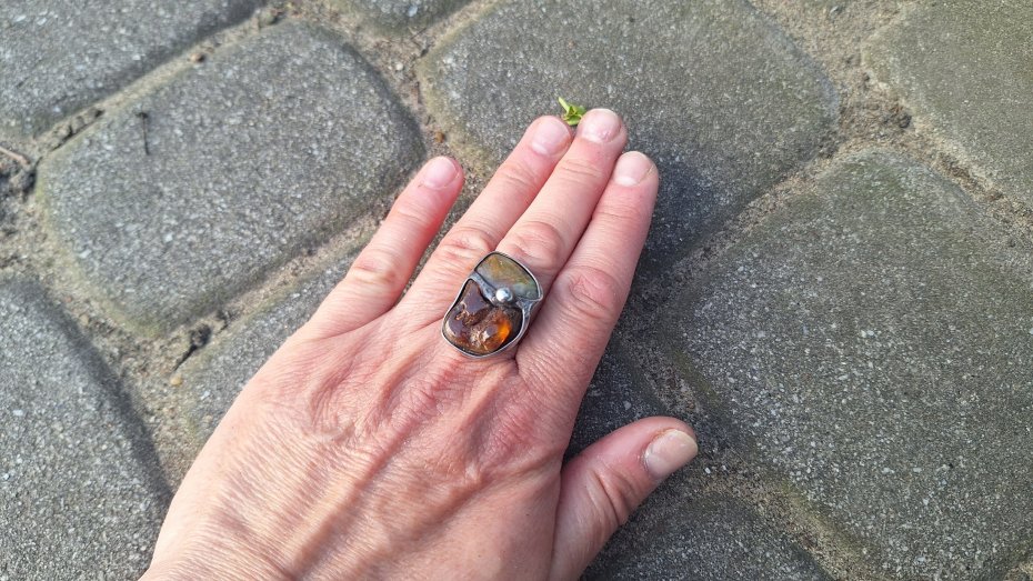 Tagi: #bursztyn bałtycki, #pierścionek z kamieniem, #regulowany pierścionek, #surowy pierścionek