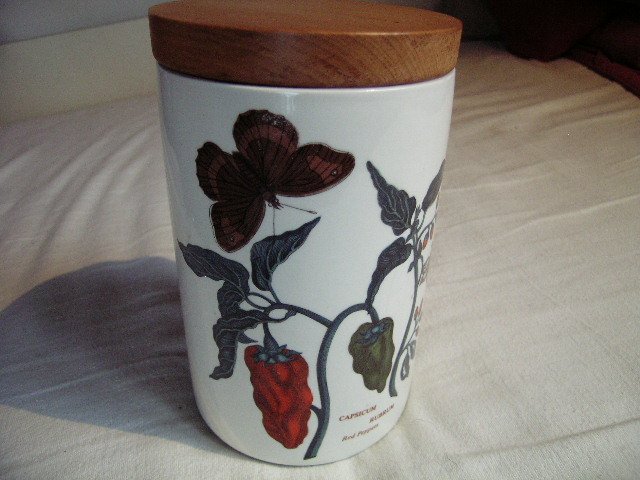 Ogromny porcelanowy Pojemnik kuchenny, sygnowany PORTMEIRION Made in England z rysunkami Susan Williams Ellis. Z kultowej serii BOTANIC GARDEN /Dishwasher proof; oven to table; freezer & microwave safe/. W pełni użytkowy i przepięknie zdobiony. Wyjątkowy, rzadko spotykany motyw na malaturze. Mocny, szlachetny. Ciepła biel porcelany i przyjemne dla oka żywe barwy. Całość na błyszcząco szkliwiona. Gruba drewniana przykrywka z gumką uszczelniającą.
