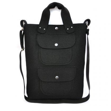 Bardzo pojemna torba do noszenia na skos, na ramię lub w ręce. Zaprojektowana i uszyta z grubego i sztywnego filcu w kolorze czarnym. Przód torebki ozdobiony dwoma kieszonkami. Torba zapinana na nap. Wymiary torby: wysokość 37,5cm, szerokość 30cm, głębokość 5cm. Długość paska max ok.110cm. Pomieści bardzo dużo rzeczy, format A4 również. Jest bardzo wygodna i praktyczna. Torebka zostanie wysłana w paczce zabezpieczającej jej pogniecenie.