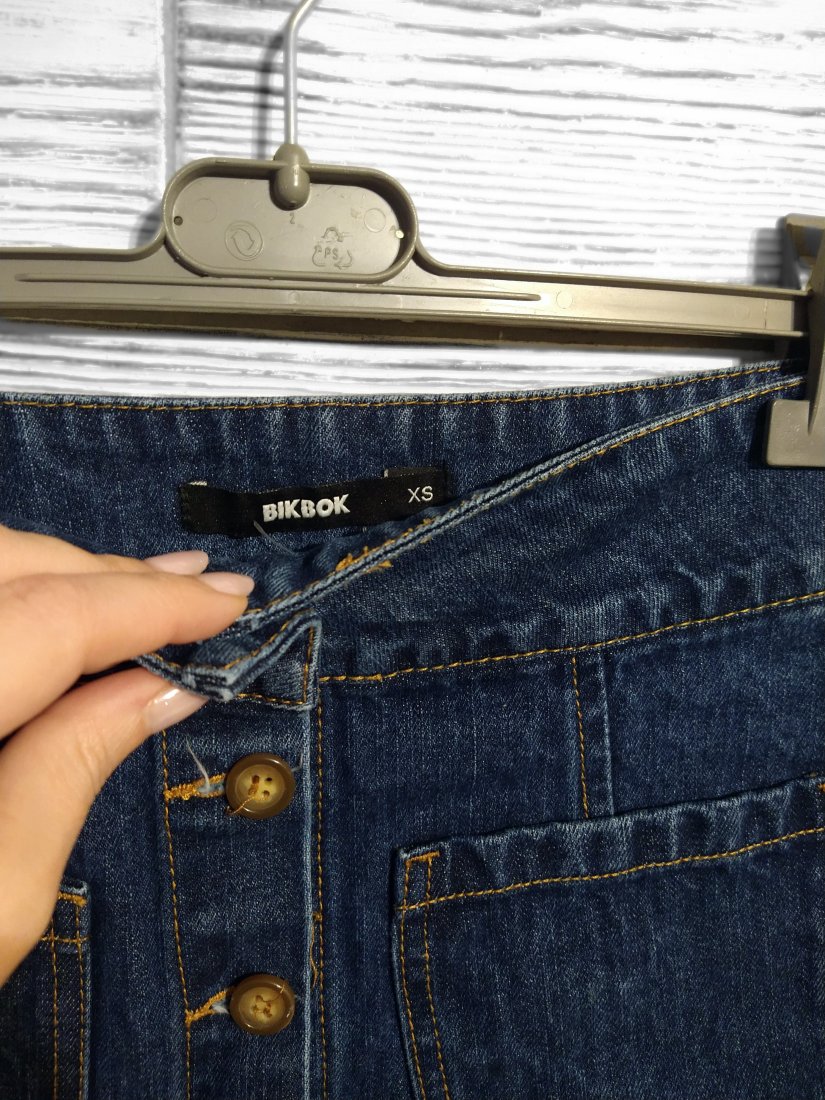 Jeansowa mini z kieszonkami, zapinana na całej długości na guziki.
