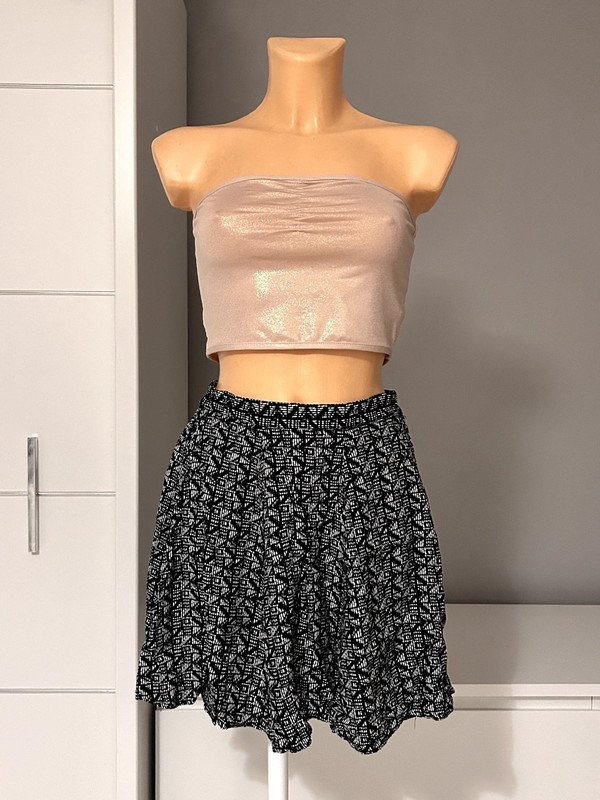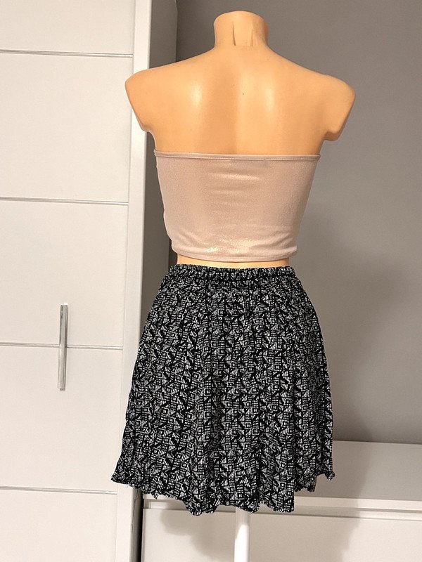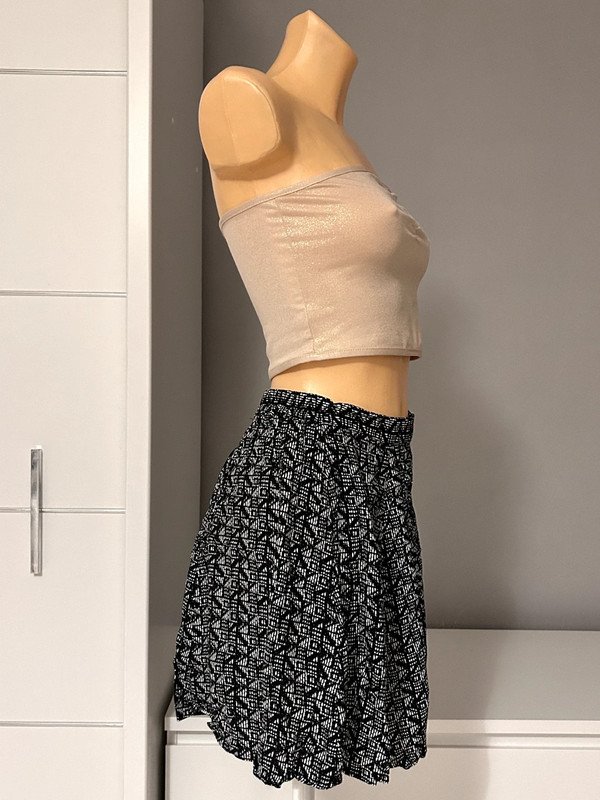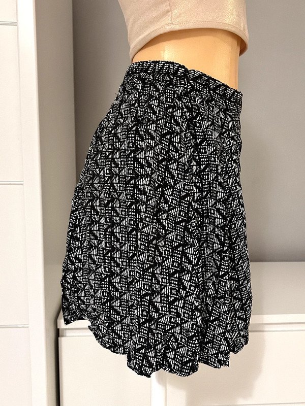 Spódniczka marki Bik bok, rozmiar z metki to XS 34. Wykonana w 100% z wiskozy, świetnie nadaje się na lato. Tylna część spódniczki posiada gumkę w talii, dzięki której świetnie dopasowuje się do sylwetki. Ma wysoki stan i jest rozkloszowana, dzięki temu świetnie maskuje mankamenty.