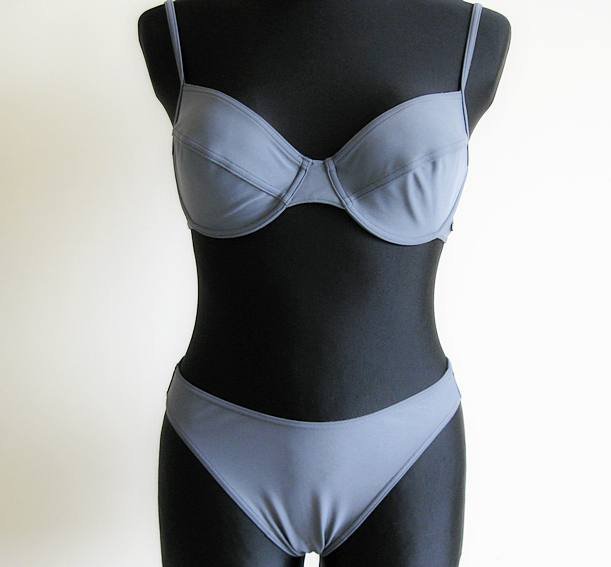 Bikini Esprit , stan bardzo dobry. Rozmiar 38C, kolor szary (ciemniejszy niż na zdjęciu) Miseczki z fiszbinami. Obwód biustonosza bez rozciągania 71cm. Gorąco polecam.