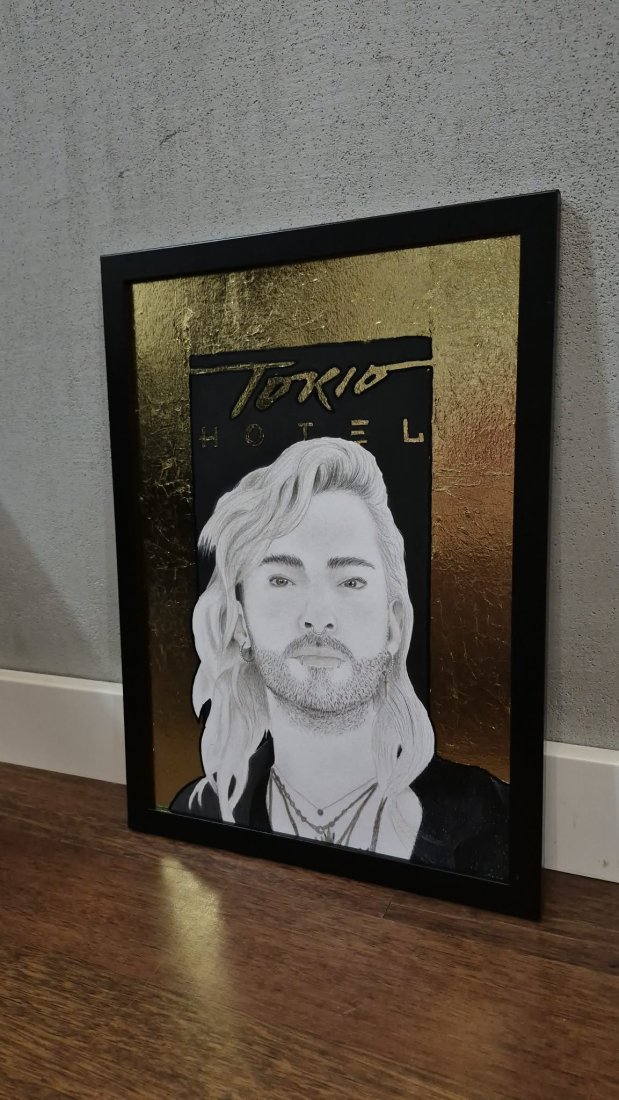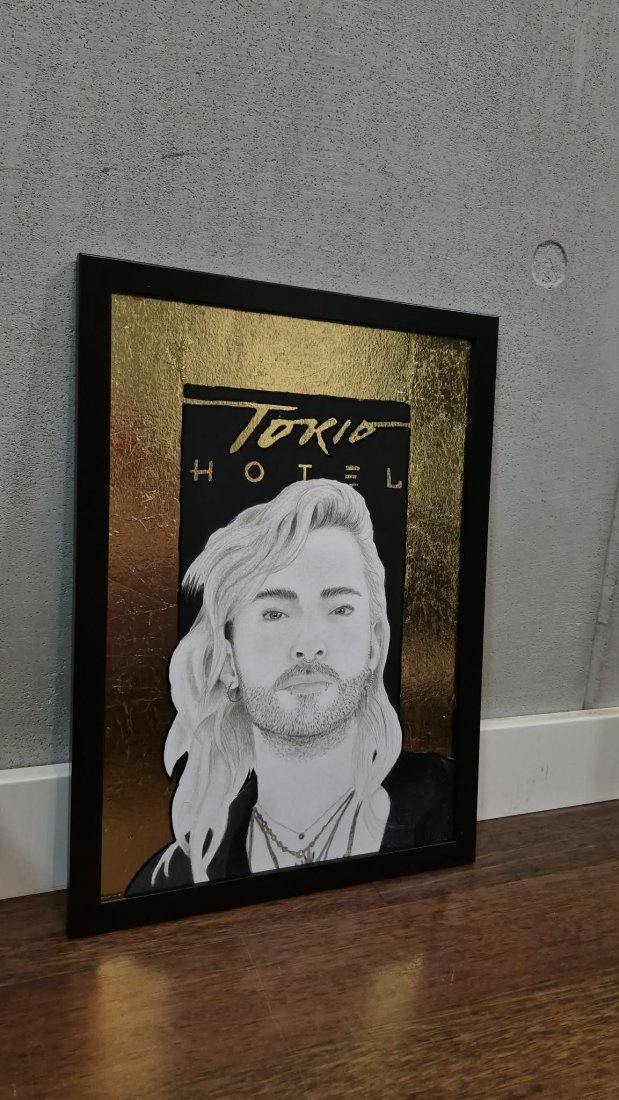 Ręcznie wykonany portret wokalisty zespołu Tokio Hotel.