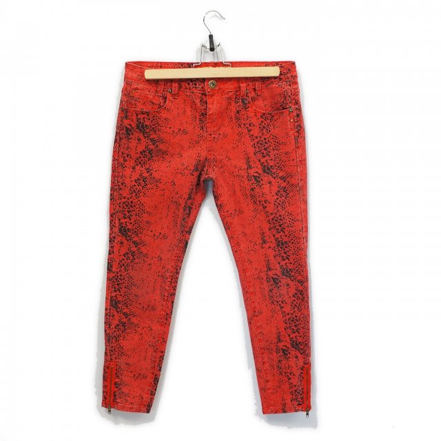 Biodrówki wykonane z jeansu w czerwono-czarnego węża