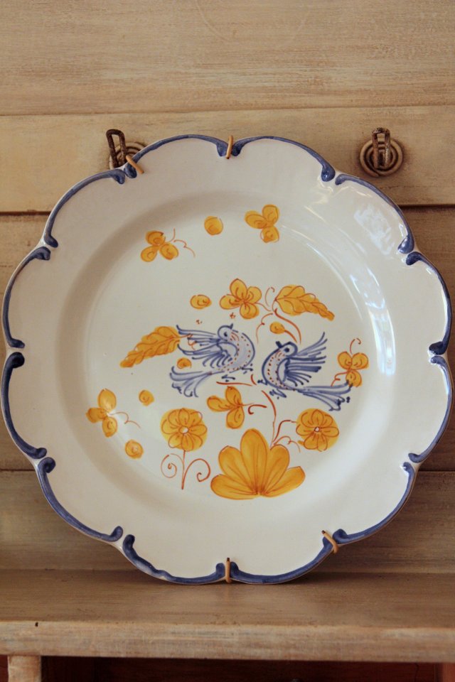 Uroczy biały, kolekcjonerski porcelanowy talerz. Ozdobiony motywem ptaszków i kwiatów.