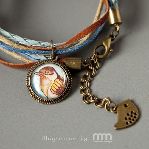 Bransoletka z możliwością noszenia jako naszyjnik, to bardzo romantyczne, nostalgiczne i kobiece malutkie dzieło sztuki. Obrazek pod szkiełkiem to autorska ilustracja. Bransoletka z kilku rzemieni prezentuje się wspaniale, a zawieszka oraz medalion dopełniają romantyczną stylistykę .