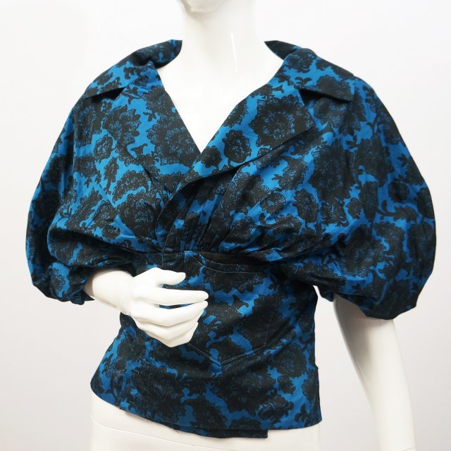 Wspaniała unikatowa bluzka z pięknego granatowego materiału we wzór przypominający czarną koronkę