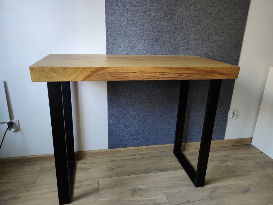 Stabilny, gruby (65 mm) blat i stalowe nogi z profili malowanych proszkowo na kolor czarny.