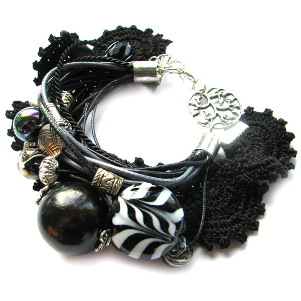 Ekstrawagancji bransoletce dodaje ręcznie robiona koronka.