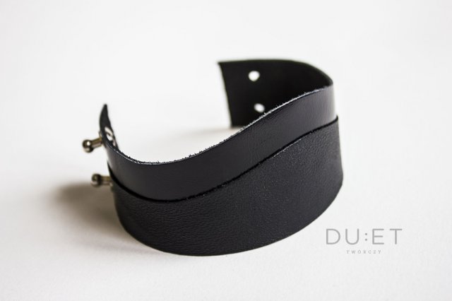 Tagi: #czarna skóra, #elegancka bransoletka, #handmade, #skóra naturalna