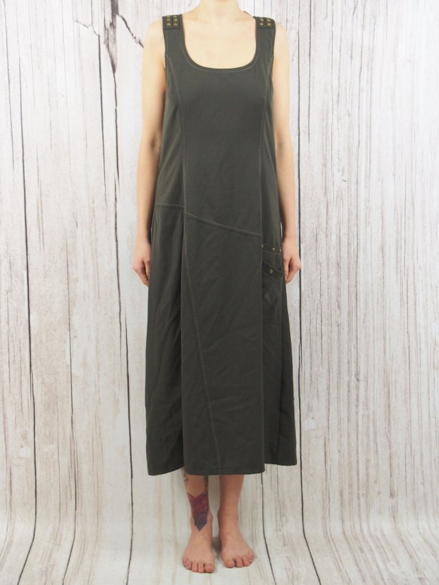 Prosta sukienka w stylu militarnym. Kolor: khaki. Materiał: poliester 65%, wiskoza 35%.