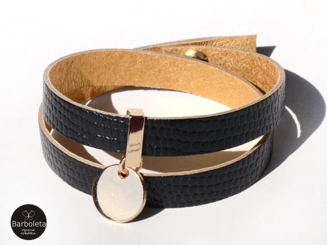 z wysokiej jakości skóry naturalnej w odcieniu klasycznej czerni z wytłoczoną fakturą gada