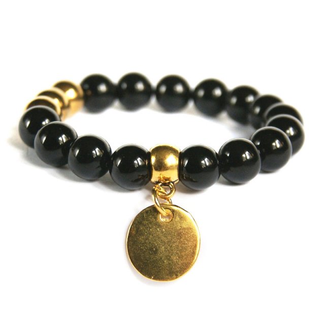 delikatna, lecz niezwykle efektowna bransoletka z NOWEJ KOLEKCJI Black & Gold... bransoletka wykonana z naturalnych kamieni ONYKSU (kule 10mm) oraz złotego hematytu 10mm) i metalowej przekładki, na solidnej elastycznej lince silikonowej.... ONYKS - Wzmacnia i regeneruje nerki. Łagodzi zaburzenia neurologiczne, apatię i stres. Wzmacnia system nerwowy. Dobrze działa na stan i wygląd skóry, zębów, paznokci i włosów. pomaga w skupieniu uwagi na najmniejszych detalach, ułatwia analizę faktów, dodaje cierpliwości i uczy samodyscypliny...HEMATYT - Ułatwia wchłanianie żelaza. Reguluje nadciśnienie. Pomaga w dolegliwościach kręgosłupa. Budzi radość życia, dodaje odwagi i umacnia wolę.W astrologii przypisany jest znakom Barana i Skorpiona... BRANSOLETKA PASUJE NA NADGARSTEK 15-16cm. TUTAJ: bransoletka ze zdj.1 - zobacz całą kolekcję ;-)