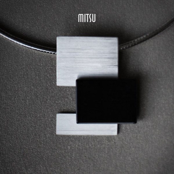Black Monolith - trial nowej kolekcji Naszyjnik wykonany ze srebra próby 925 oraz wyrazistego geometrycznego onyksu o pięknym czystym szlifie. Całość zawieszona na elastycznej grubej obroży 3 mm. Obroża jest wyciągana i można jej użyć do wielu innych celów, sprawdzi się również w wydaniu solowym. Naszyjnik można zamówić na cieńszej bazie - w takim wypadku proszę o kontakt. Wymiary srebrnego elementu: 2,5 x 4 cm Wymiary kamienia: 2,5 x 1,8 cm.