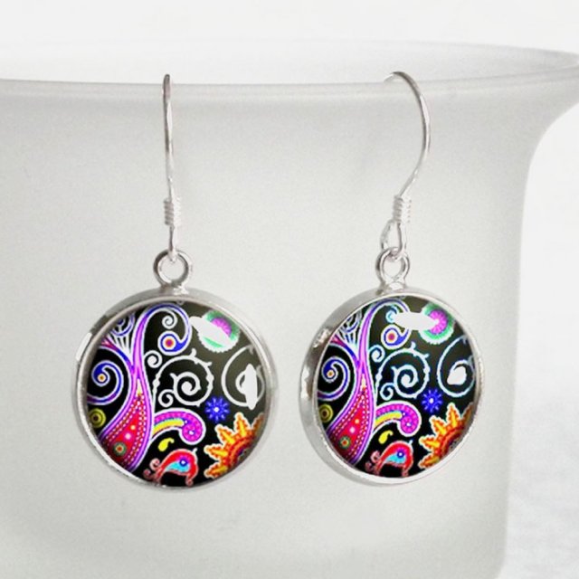 Delikatne, śliczne kolczyki wiszące z oryginalną grafiką artystyczną, umieszczoną pod wypukłym szkłem, w oprawie w kolorze srebra. Grafika jest najwyższej jakości. Bigle wykonane ze srebra próby 0,925. Szkła z grafiką są niepowtarzalne, wykonane ręcznie według mojego projektu, z dbałością o każdy detal, dlatego biżuteria ta jest jedyna w swoim rodzaju i niespotykana.