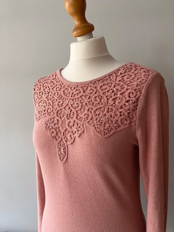 Bladoróżowy sweterek Orsay ozdobny dekolt