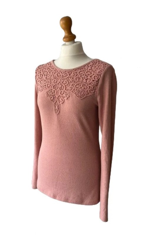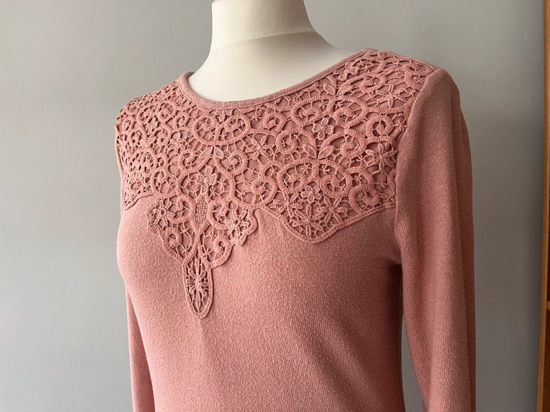 Bladoróżowy sweterek Orsay ozdobny dekolt