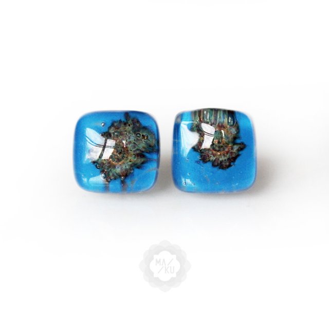 Szklane kolczyki- sztyfty wykonane ze szkła metodą fusingu w pięknej żywej kolorystyce.