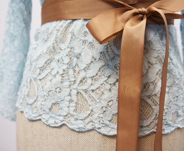 Prześliczna delikatna bluzeczka wykonana z błękitnej jasnej koronki