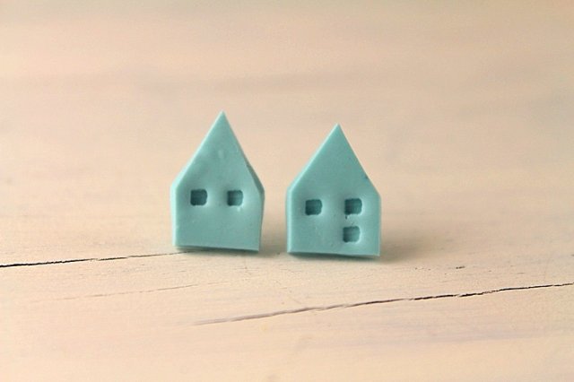 Witaj w moim sklepie. Mam do zaoferowania własnoręcznie wykonane z masy termoutwardzalnej fimo kolczyki sztyfty - błękitne domki.