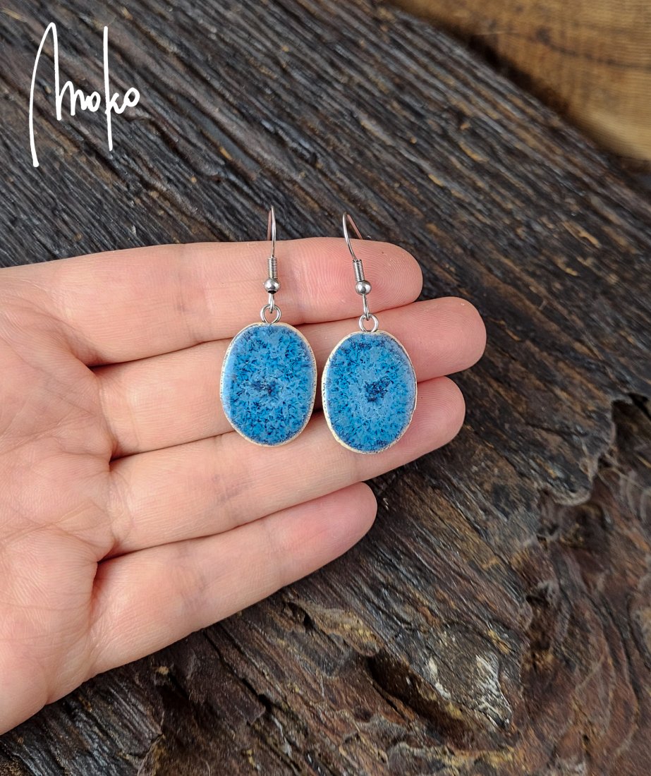Kolczyki są wykonane z naturalnej gliny metodą dwukrotnego wypału, ręcznie formowane i ręcznie szkliwione. Jest to unikatowy, niepowtarzalny egzemplarz, powstały z pasji i wieloletniego doświadczenia, oraz w wyniku fascynujących procesów chemiczno-fizycznych, które zachodzą w wysokiej temperaturze. Każdy kolczyk jest odręcznie sygnowany.