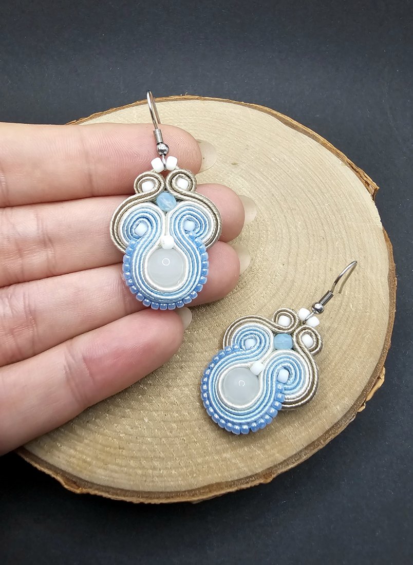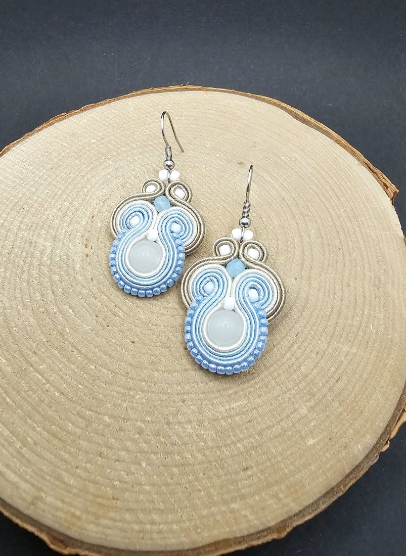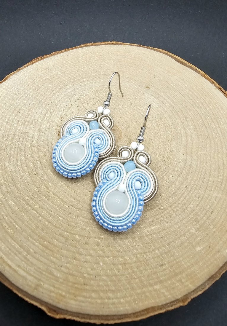 Błękitno-białe kolczyki sutasz