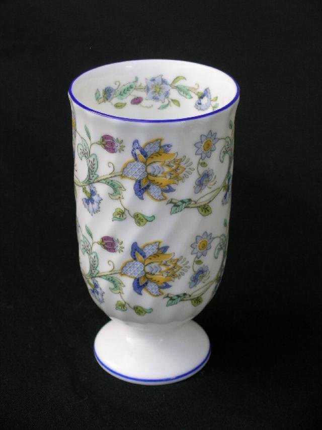 Piekny porcelanowy puchar-wazon, sygnowany jakością Minton. Najwyższa elegancja wzoru i mistrzostwo porcelanowego szlachetnego wykonania. Z serii kwiatowej - tutaj w niebieskościach a nie w różach :) Prawdziwe cudo i przyjemność użytkowania. Dół 5; góra 6,5; wysokość 12,5 cm. Stan zachowania bardzo dobry. Wartość kolekcjonerska ... i użytkowa :)
