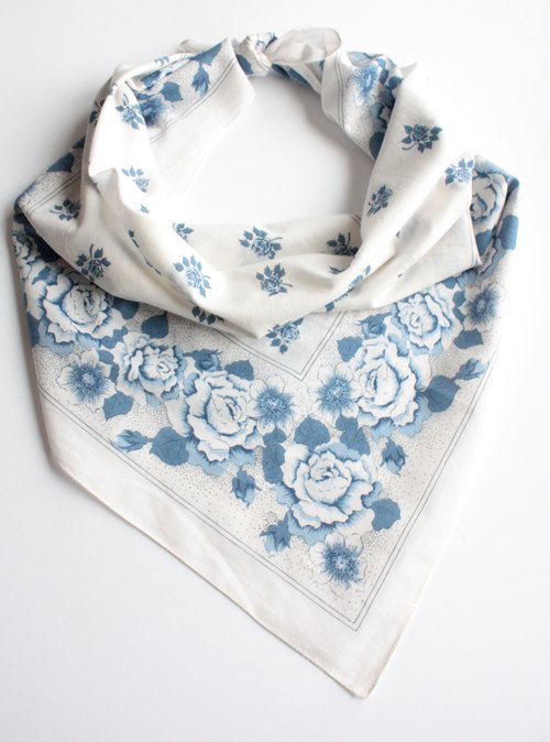 Miękka chusta w kwiatowe wzory na białym tle. Materiał oceniam na bawełnę lub wiskozę.
