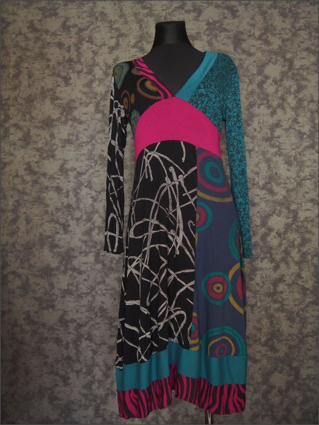 Piękna sukienka z wiskozy i elastyny firmy Bluette. Design podobny do Desigual, natomiast ta firma stosuje lżejsze materiały.
