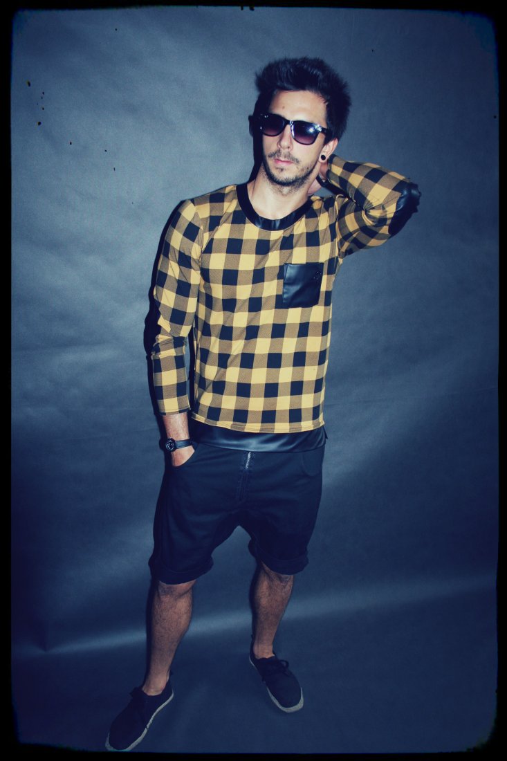 Bluza unisex uszyta z 92% z bawełny i 8% z elastanu i elementów skórzanych.