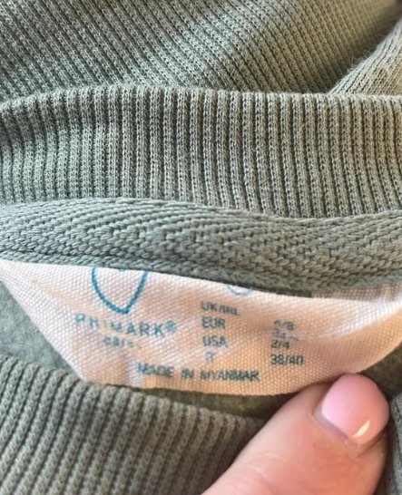 Bluza dresowa zielona/oliwka/khaki Primark rozmiar 34/36 z nadrukiem na plecach.