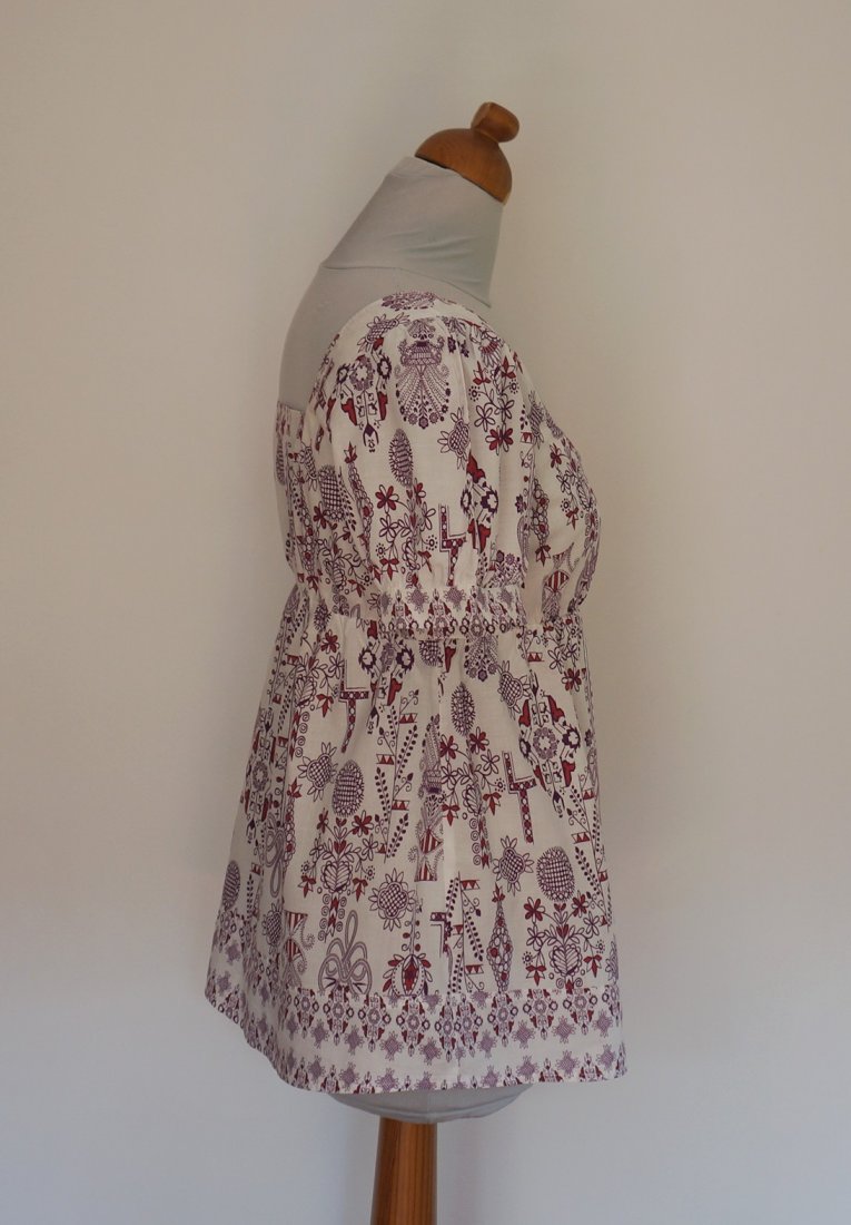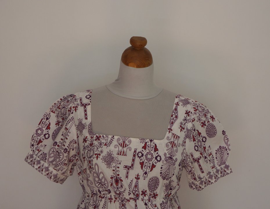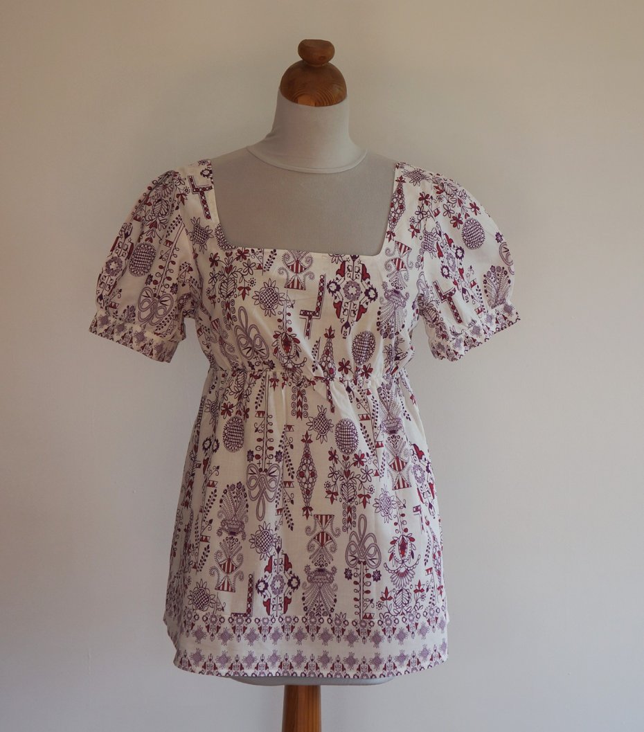Letnia bluzeczka H%M. Kwadratowy dekolt. Krótkie,bufiaste rękawki. Pod biustem gumka. Dół lekko marszczony. 100% bawełna. Stan bardzo dobry.
