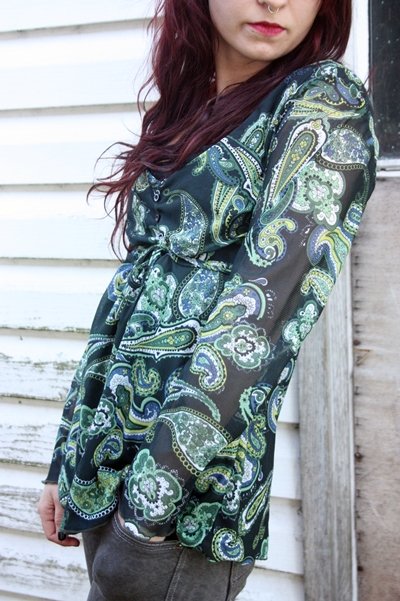 Zielona bluzeczka we wzory. rozmiar S,nowa,firmy yessica.osoba na zdj.nosi rozm.S