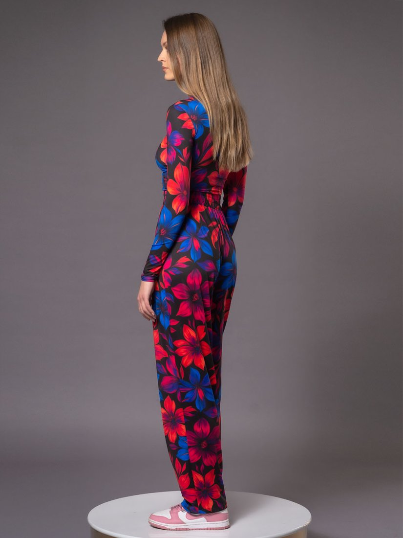 Uszyta z miękkiego, elastycznego jerseyu z autorskim printem Flower Power, łączy wygodę z mocnym kolorem i charakterem. Ma dopasowany krój, długi rękaw i zabudowany, okrągły dekolt, dzięki czemu pięknie podkreśla sylwetkę i stanowi świetną bazę pod wiele stylizacji.