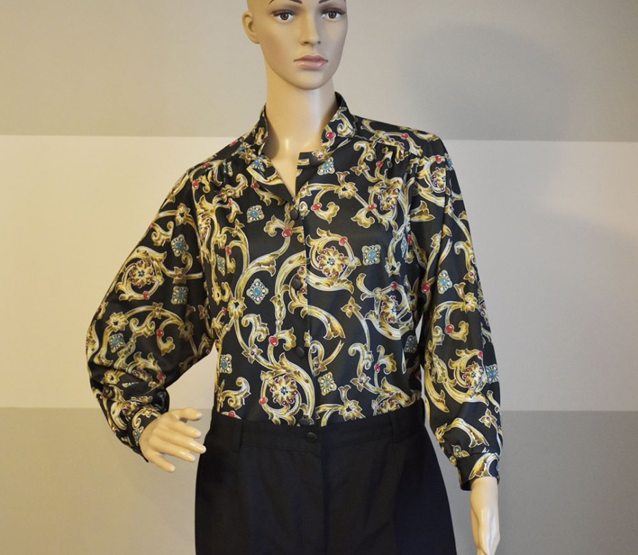 Elegancka bluzka damska w stylu barokowym – przyciąga wzrok i dodaje charakteru każdej stylizacji. Idealna dla kobiet, które lubią podkreślać swój wyjątkowy styl i stawiają na oryginalność.