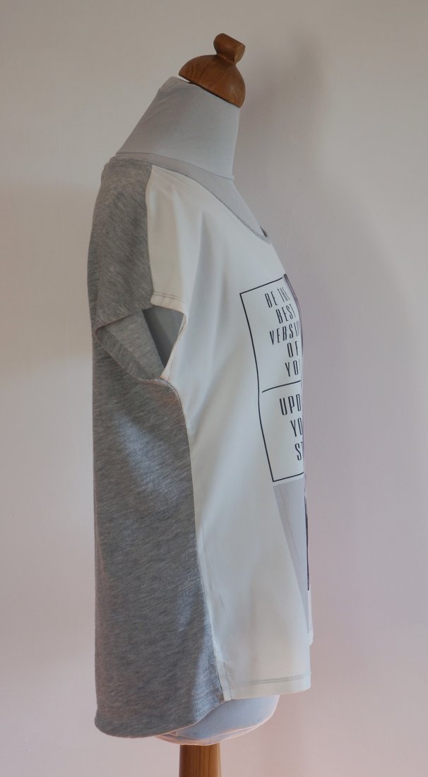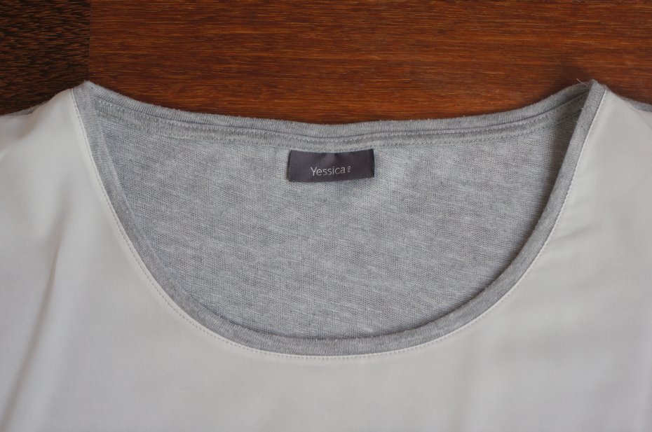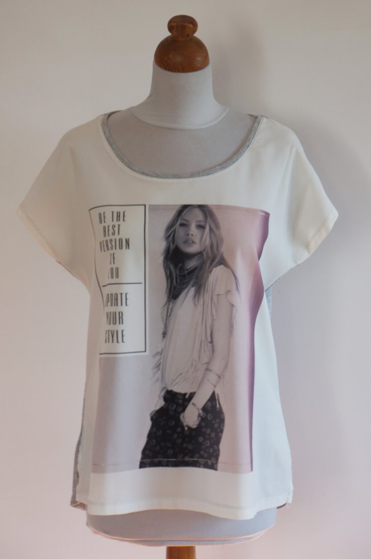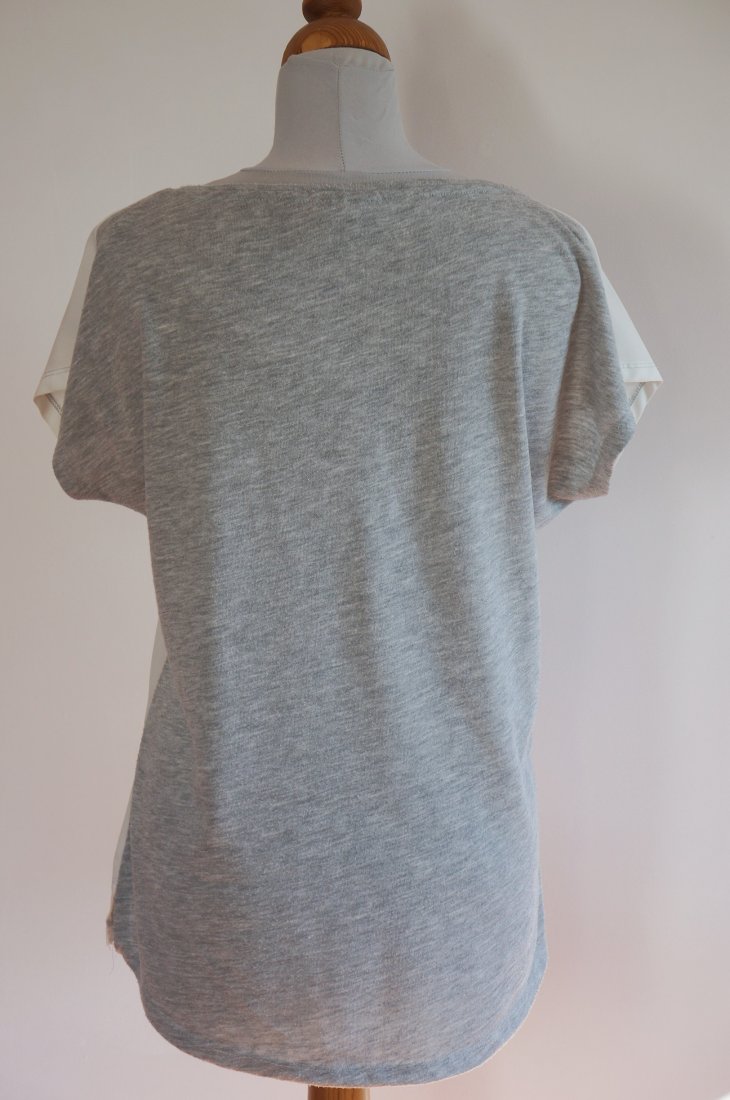 Bluzka damska marki Yessica. Z boku rozcięcia długości 6 cm. Zamiast rękawów opadające ramiona. Tył delikatnie dłuższy. Stan dobry. Bez wad.