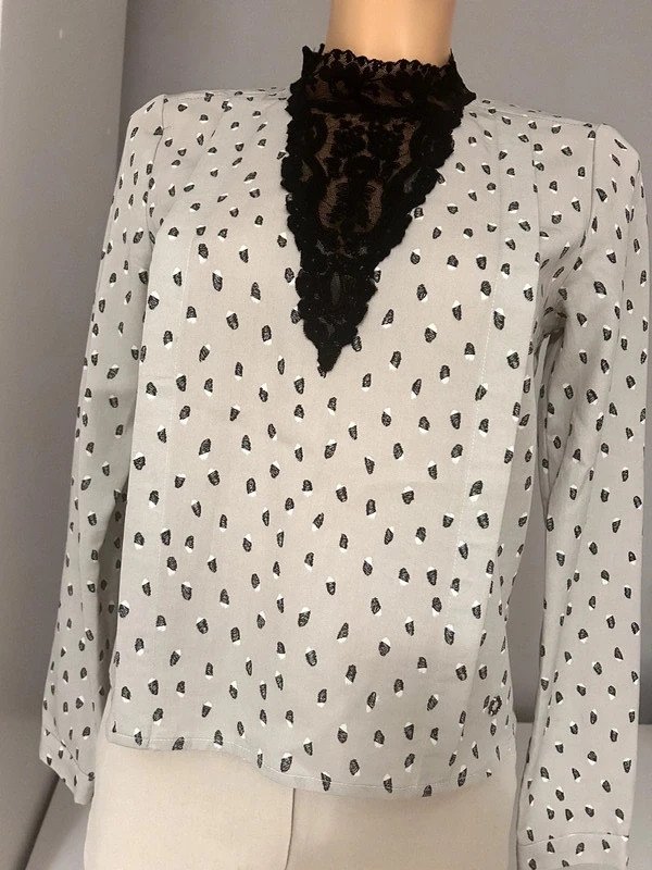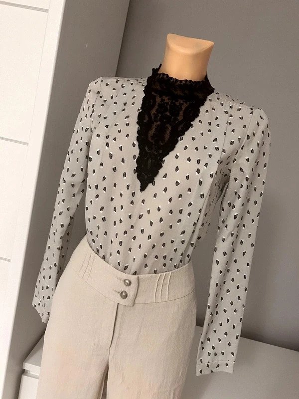 Elegancka bluzka Numph r. 36 z przepiękną koronkową wstawką, niezwykle oryginalna, ozdobne zaszewki z przodu, wykonana z dbałością o każdy szczegół, idealna do biura jak i na imprezę.