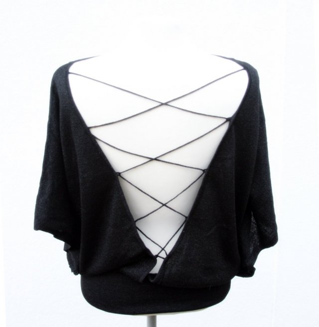 Czerń ze srebrem, bluzka z dekoltem na plecach ,firmy GLASSONS.