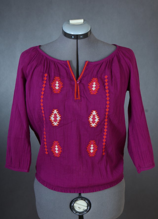 bluzka OLD NAVY z kreszowanej bawełny, miłej w dotyku, w kolorze fuksji, z haftami krzyżykowymi z przodu i gumką na dole. rozmiar S