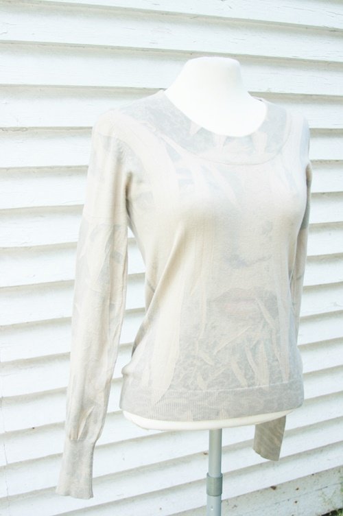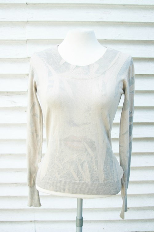 Bluzka sweterek khaki z motywem, 75 % bawełna, 25 % poliamid